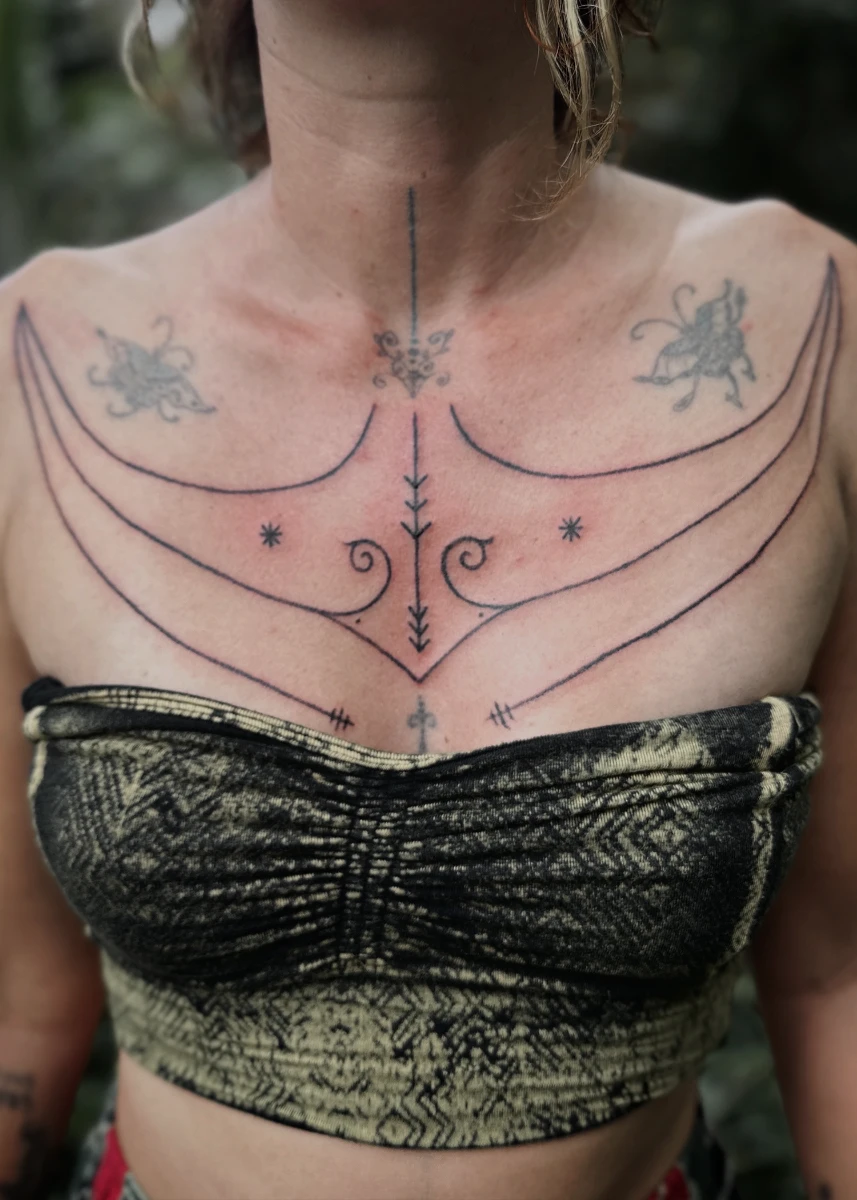 In 2019, my path led me to Bali, where I found an opportunity to share Mentawai culture through art. Since then, this island has been my home, a place where people from around the world have sought me out to receive these tattoos, carrying the legacy of my ancestors on their skin. With each tattoo, this tradition continues to travel, finding new pathways and keeping our heritage alive.